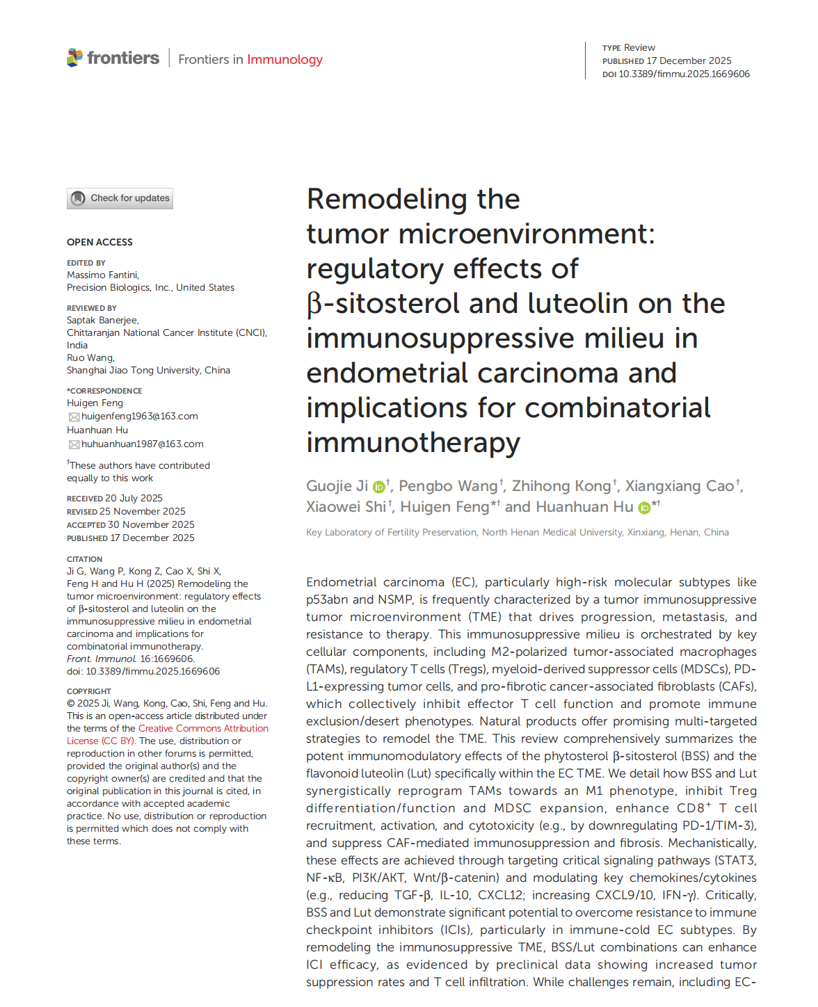 胡焕焕、姬国杰团队研究成果为子宫内膜癌治...